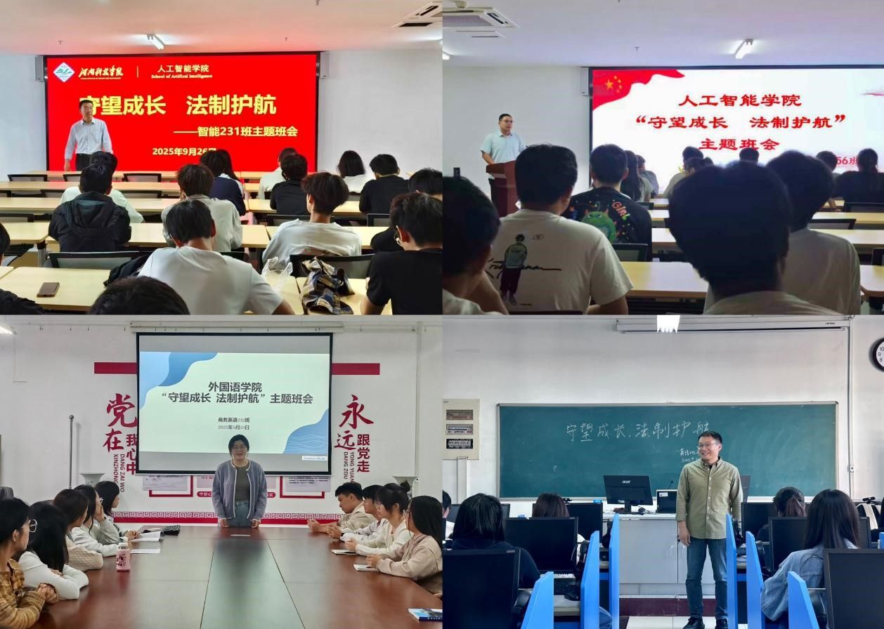 活动期间,学生处、团委组织各班级开展了以“守望成长,法治护航”为主题的班会活动。班会内容涵盖《学生手册》相关规定、民族宗教法律法规、日常安全管理、宿舍管理制度、网络安全规范、外出安全须知及考试违纪处理办法等,通过理论学习、案例剖析、互动讨论等多种形式,切实增强了学生的法治观念和自我保护能力,进一步夯实了校园安全基础。