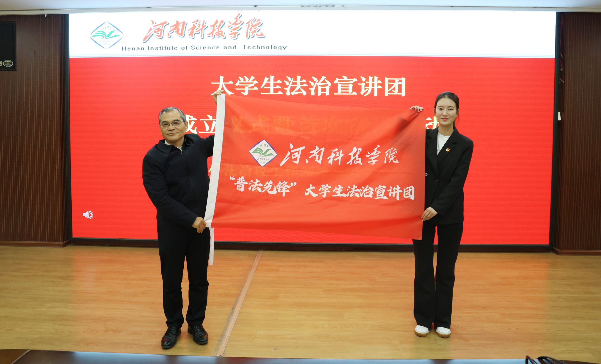 王庆兵为宣讲团授旗,并向宣讲团成员颁发聘书。党委宣传部负责人宣读了大学生法治宣讲团成员名单。宣讲团团长作表态发言。