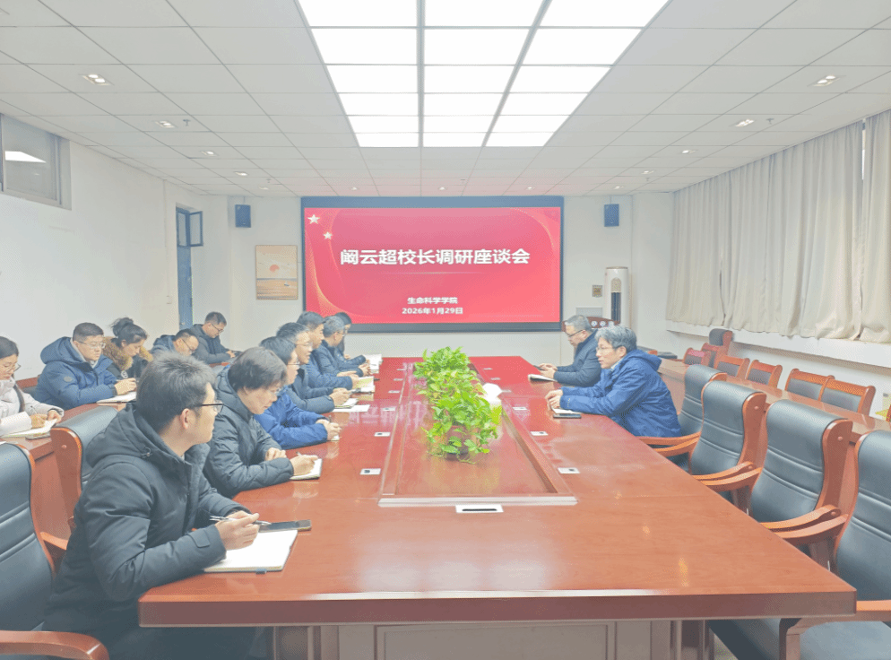 1月29日下午,校长阚云超到生命科学学院开展调研,在学院会议室召开座谈会。学院领导班子成员、科研团队负责人和青年教师代表参加了座谈会。